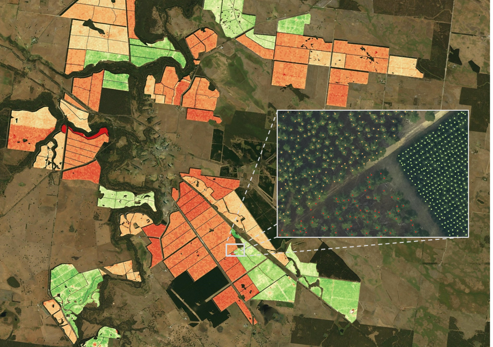Traditional methods are replaced by our efficient image analytics solution, processing satellite and aerial imagery for precise tree enumeration.